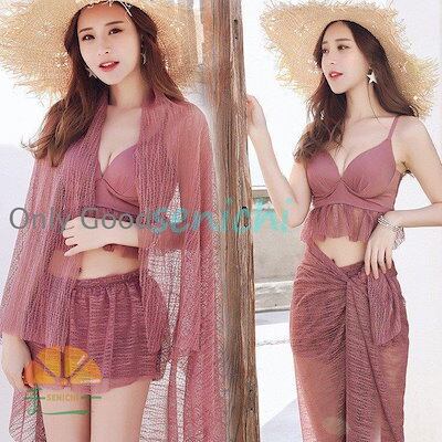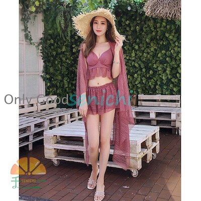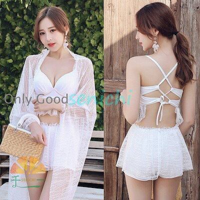 ビキニ水着レディース 夏 ビキニ3点セット 韓国風 レース 小胸バンドゥビキニ 水着 セパレート 紫外線カット 40代 スイムウェア 温泉 ママ水着