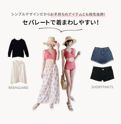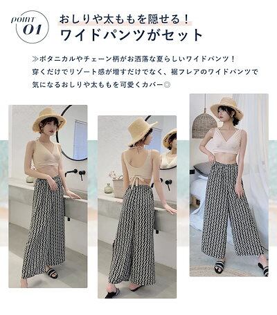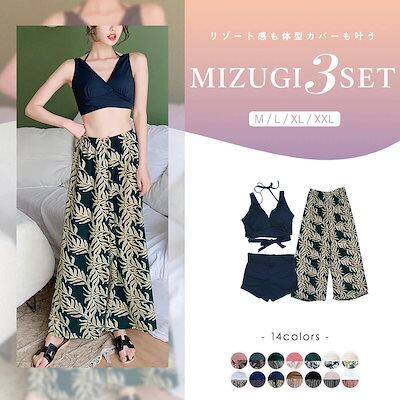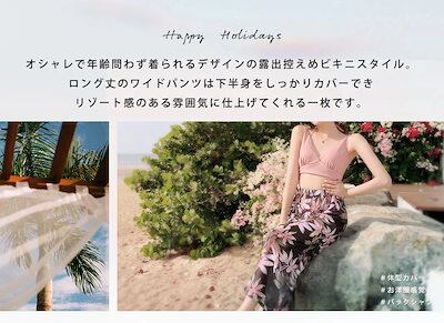 人気 水着 レディース 体型カバー 水着 タンキニ Vネック ビキニ ワイドパンツ 3点セット 代 30代 40代 ママ水着 ロングパンツ バックシャン カシュクール風 可愛い お洒落 くすみ