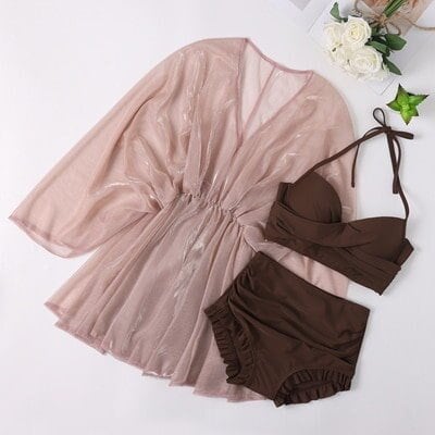 水着 レディース 体型カバー 韓国ファッション 競泳 3点セット 韓国 水着セット ビキニ フリル レース