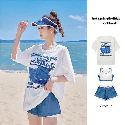 迅速な出荷水着レディース 水着 やせて見える セパレート水着 3点セット 日焼け止め 水着運動 体型カバー 水着
