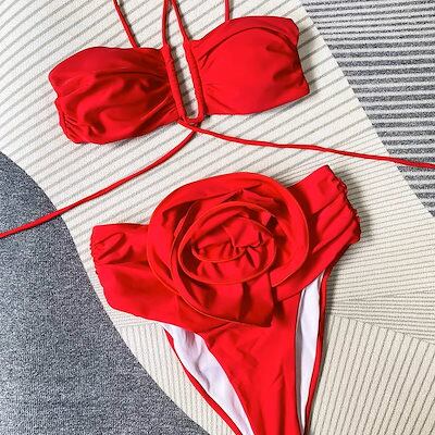 水着 ビキニ スイムウェア レディース 紐 ビスチェ クロス クロスバンド ハイウエスト セット 上下セット 大人可愛い きれいめ シンプル ゴージャス 華やか 大人っぽい おしゃれ お洒落 主役級