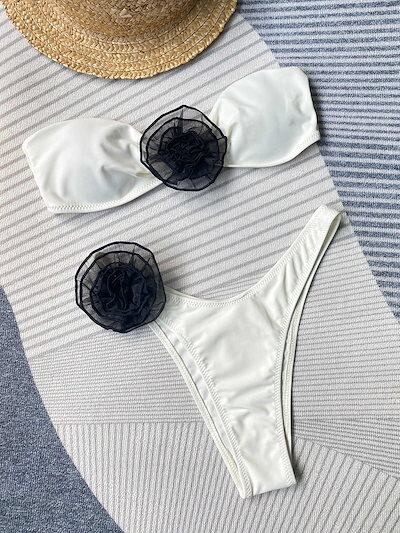 水着 ビキニ スイムウェア レディース バンドゥ ハイレグ セット ツーピース かわいい 大人可愛い 華やか おしゃれ お洒落 主役級 存在感 キュート ガーリー フェミニン リゾート 旅行 温泉