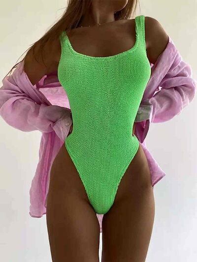 水着 ビキニ スイムウェア レディース ワンピース ハイレグ ニット かわいい 大人可愛い 華やか おしゃれ お洒落 主役級 存在感 キュート ガーリー フェミニン リゾート 旅行 温泉 プール 夏