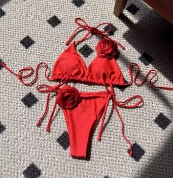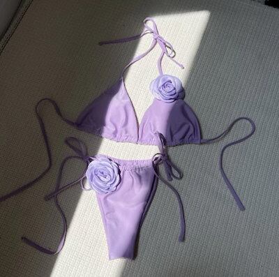 水着 ビキニ スイムウェア レディース 紐 フラワー 花 大人可愛い きれいめ カジュアル ゴージャス 華やか 大人っぽい おしゃれ お洒落 主役級 存在感 個性的 セクシー リゾート 旅行 温泉