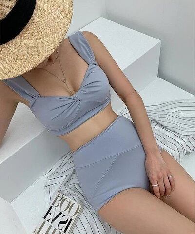 水着 レディースデザインのダブルショルダービキニ2点セット ビキニ 水着 レディースファッション