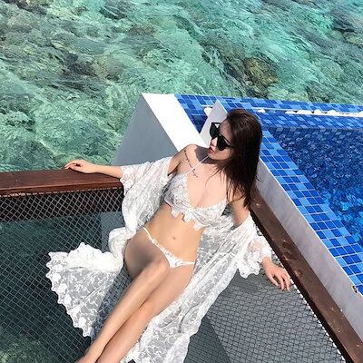 水着 レース ビキニ パッド付き 胸元 谷間 盛れる きれいめ セクシー シンプル 華やか 大人っぽい おしゃれ 主役級 女っぽ かっこいい 20代 30代 レディース ママ 夏 海 ビーチ プール