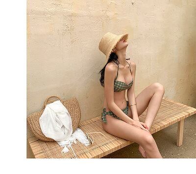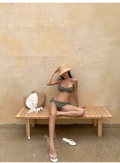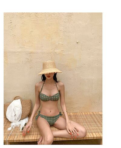 水着 ビキニ スイムウェア レディース バンドゥ 紐 セパレート リボン ホルターネック サイドリボン 上下セット 大人可愛い シンプル カジュアル おしゃれ ガーリー トレンド ヘルシー ボタニカル