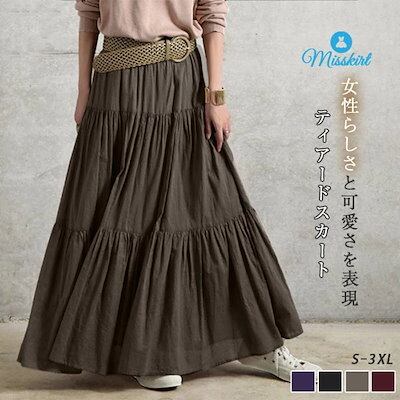 ティアードスカート スカート マキシ丈スカート 綿麻調スカート 綿麻調 ウエストゴム ボトムス レディース 無地 ロング丈 マキシ丈 ファッション きれいめ 大人 上品 エレガント おしゃれ OL