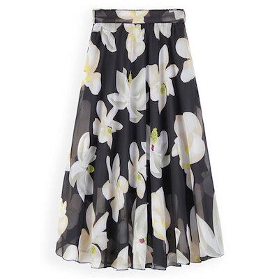 スカート ギャザースカート ロングスカート シフォン Aライン aライン 花柄 レディース ロング丈 ウエストリボン ボトムス お洒落 オシャレ ウエストゴム 大人 着回し きれいめ お出かけ 大きい