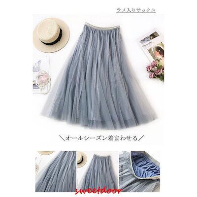 ロングスカート 冬 スカート チュールスカート レディース ボ ロング丈 マキシスカート ウエストゴム 無地 体型カバー フレア ボリューム 40代