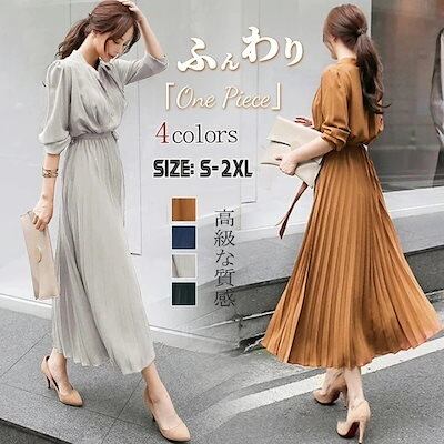 【人気の新作】秋ワンピ 切り替え ロング ワンピース フレンチスリーブ 通勤 お呼ばれ 結婚式 ワンピース レディース ウエストベルト付き プリーツワンピース 可愛い 二次会 ふんわり きれいめ 大人