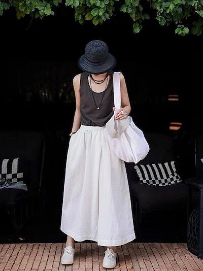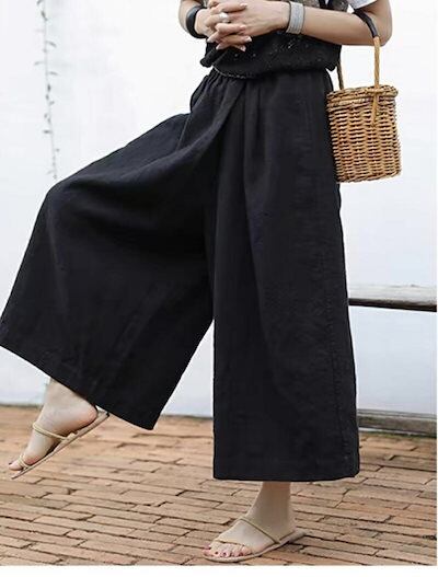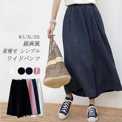 ワイドパンツ パンツ ガウチョパンツ レディース 夏 ロングパンツ ガウチョ スカート見え ふんわり ウエストゴム 大きいサイズ 九分丈 ボトムス イージーパンツ ポケット付き 揺れる 薄手 ゆったり