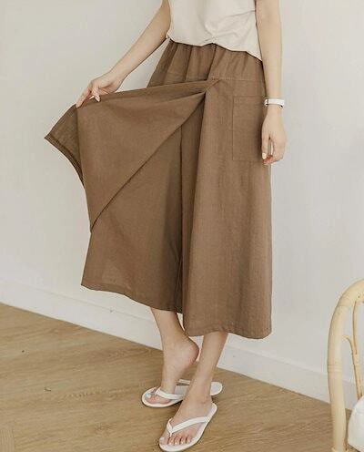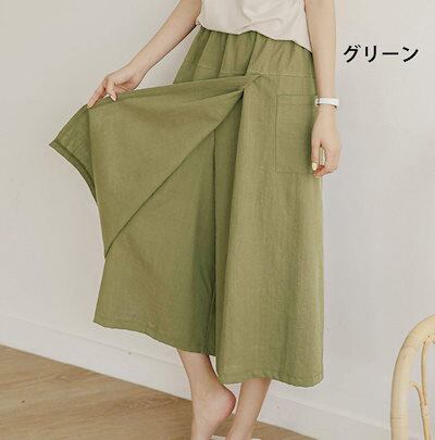 ワイドパンツ レディース 夏 ラップパンツ 巻きスカート風 パンツ ガウチョパンツ 綿麻 涼しい 巻きスカート スカーチョ ボトムス ウエストゴム ガウチョ イージーパンツ ワイド 体型カバー エプ