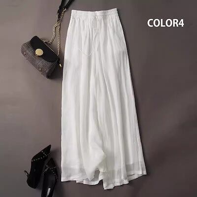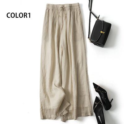 ワイドパンツ レディース 大きいサイズ ロングパンツ 夏 春 スカート風 パンツ ガウチョパンツ ロング ワイド ハイウエスト ウエストゴム リボン ボトムス ポケット付き スカーチョ ゆったり ズボ
