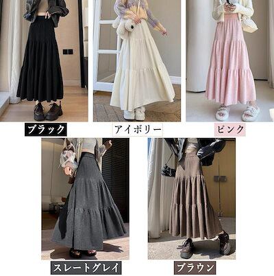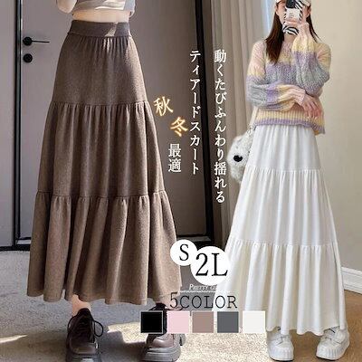 ティアードスカート スカート ギャザー ボリューム レディース ロングスカート フリル フレア  ウエストゴム ボトムス ふんわり  Aライン 大きサイズ 秋 冬 S M L 2L