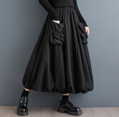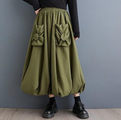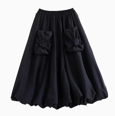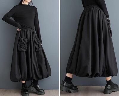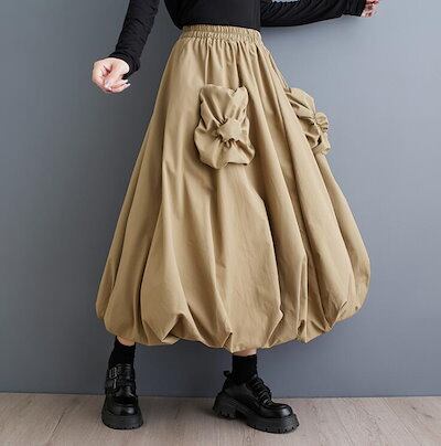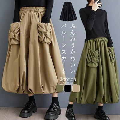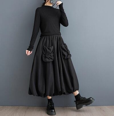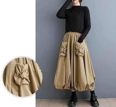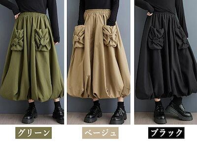 スカート ロング レディース バルーンスカート コクーンスカート プリーツ ロングスカート タック ウエストゴム ポケット付き 裏地付き カジュアル 可愛い ボトムス