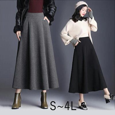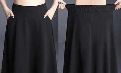 スカート フレアスカート  ロング ミモレ丈 ポケット ハイウエスト レディース aライン 大きいサイズ 膝下 ウエストゴム スッキリ 細見え カジュアル ポケット付き 通年S M L 2L 3L