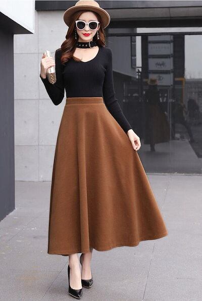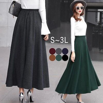 スカート フレアスカート フリルスカート  ロング ミモレ丈 ハイウエスト レディース aライン 大きいサイズ 膝下 ウエストゴム  細見え カジュアル 春秋冬 S M L 2L 3L