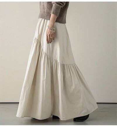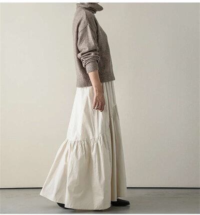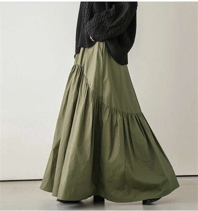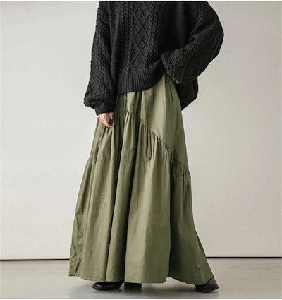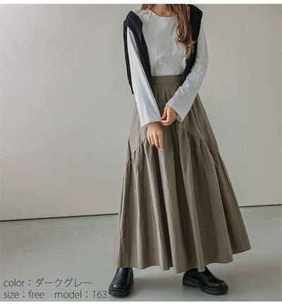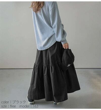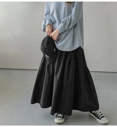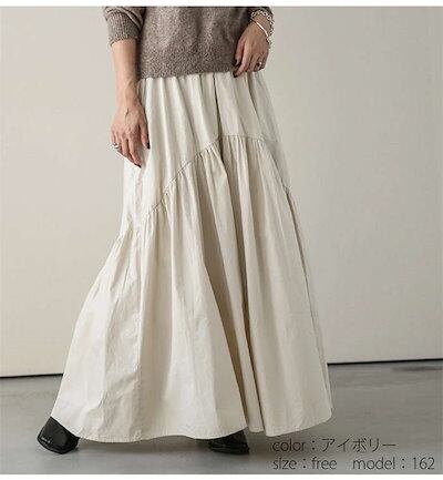 スカート レディース ロングスカート マキシ丈 ギャザースカート ふんわり バルーン フレア 春 秋 大きいサイズ ウエストゴム 可愛い おしゃれ 無地 着痩せ ゆったり カジュアル ハイウエスト ボ