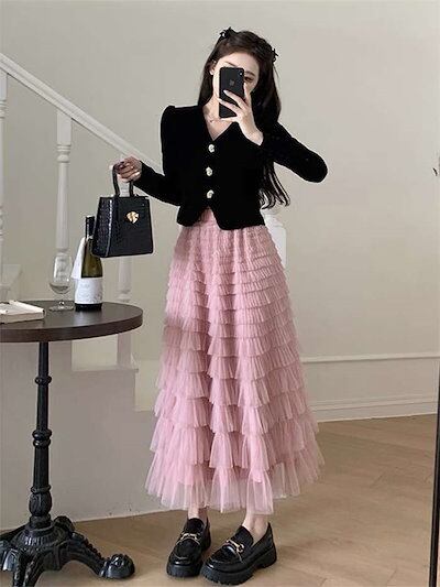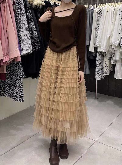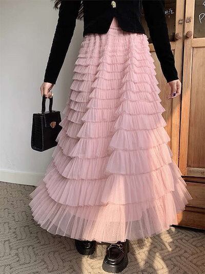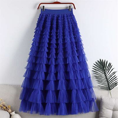 ティアードスカート レディース 春夏 ボトムス ロング丈 フレアスカート ティアード スカート チュール スカート かわいい Aライン フレア ウエストゴム 体型カバー おしゃれ ゆったり カジュアル