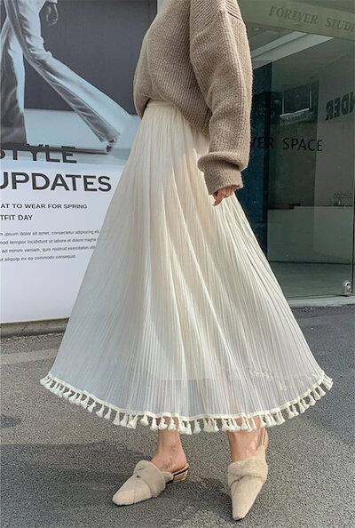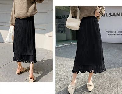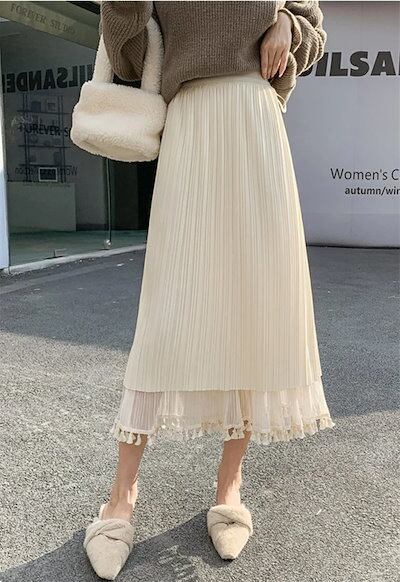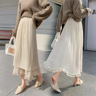 プリーツスカート スカート レディース 春夏 ロングスカート リバーシブル ロング丈 Aライン 裏地付き トレンド ウエストゴム ハイウエストゴム 楽ちん ボトムス ゆったり 体型カバー 着?せ 高見