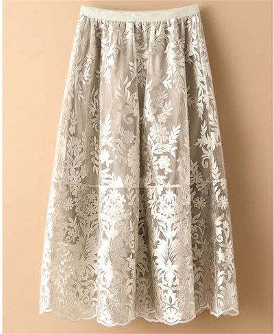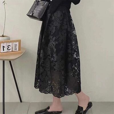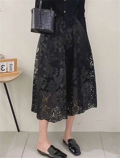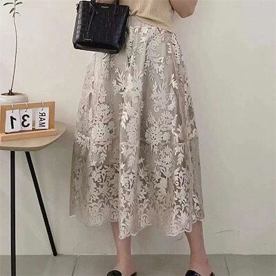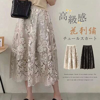 ロングスカート レディース 春 夏 秋 刺繍スカート チュールスカート ロング ボトムス マキシスカート スカート 大人 スカート レース 体型カバー フレア 裏地あり ウエストゴム フレアスカート