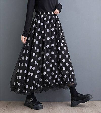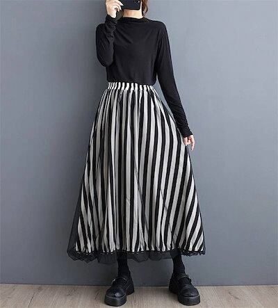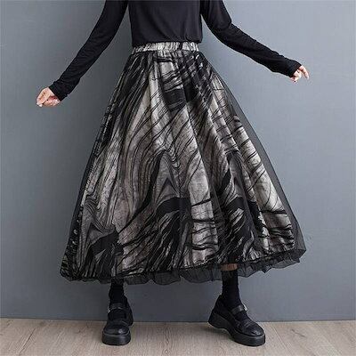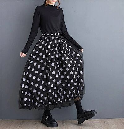 スカート レディース 春夏 ロングスカート Aライン ダブルスカート ダブル ロング丈 チュール ストライプ柄 ドット柄 総柄 ウエストゴム 秋 フレア ボトムス ゆったり 体型カバー お洒落 カジュ
