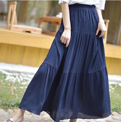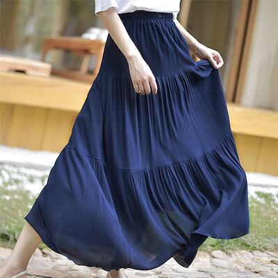 フレアスカート ロング 春夏 大きいサイズ タイトスカート ふんわり マキシスカート 無地 スカート ロングスカート マキシ フレア レディース Aライン ミモレ丈 ウエストゴム 綿麻風スカート 裏地