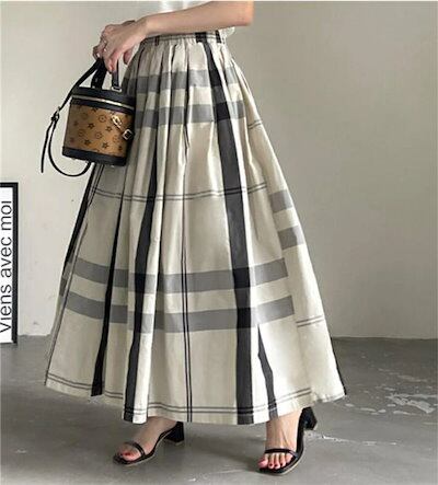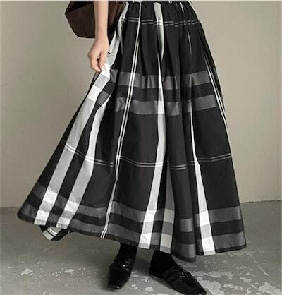 スカート チェックスカート レディース 春夏 ロングスカート ロング丈 チェック柄 Aライン ウエストゴム Aライン フレア ボトムス ゆったり 体型カバー 着?せ 森ガール カジュアル シンプル