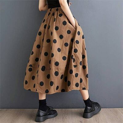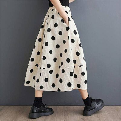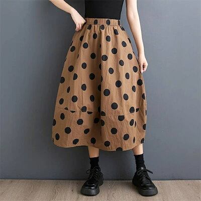 スカート ドットスカート レディース 春夏 ロングスカート ロング丈 ドット柄 Aライン 切り替え 水玉柄 ボトムス ウエストゴム 森ガール カジュアル シンプル 通勤 ゆったり 体型カバー 着?せ
