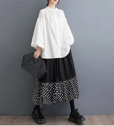 バルーンスカート ロングスカート レディース コクーンスカート ゆったり コクーン バルーン スカート ドット柄 aライン 春 夏 秋 ロング ウエストゴム ボトムス ゆる 体型カバー 総ゴム 美脚