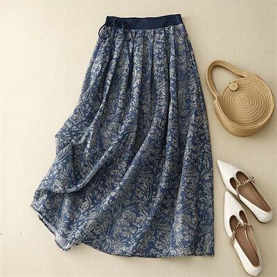 スカート ロングスカート 花柄 レディース 夏 花柄スカート ロング丈 Aライン フレア レトロ ウエストゴム 楽ちん ボトムス 大きいサイズ ゆったり 体型カバー カジュアル 森ガール お洒落 エス