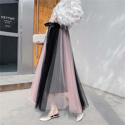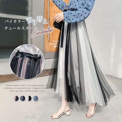 スカート 春夏 カラー切替 プリーツスカート フレア スカート レディース ロング 春夏 切り替え チュールスカート 大人 冬 ミモレ丈 ロングスカート Aライン マキシスカート ウエストゴム お呼ば