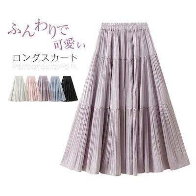 スカート ロングスカート レディース マキシスカート プリーツスカート ボトムス 春 夏 Aライン フレアスカート 無地 薄手 軽量 落ち感 ふんわり シフォン ウエストゴム セレモニー ゆったり カ