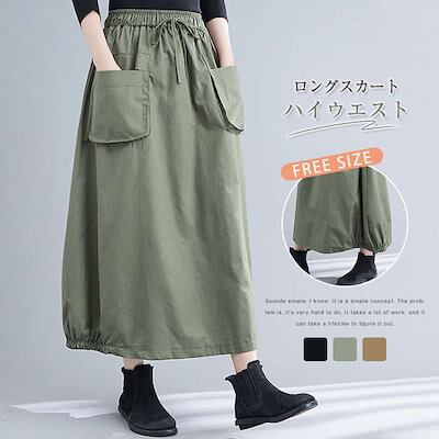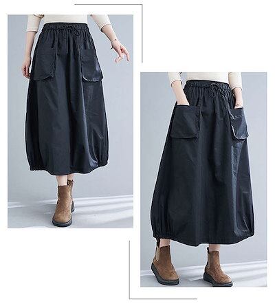 スカート レディース 膝下 ロングスカート 春 夏 秋 ロングスカート ミモレ丈 ボトムス ハイウェスト 大人 きれいめ ウエストゴム 黒 韓国風 通勤 オシャレ OL 無地 着回し ゆったり 母の日