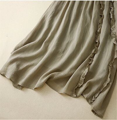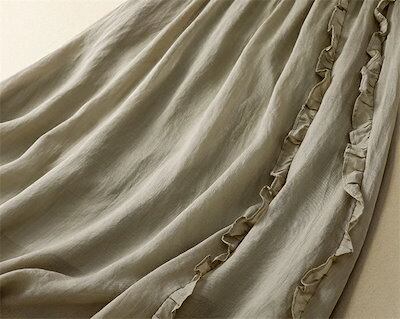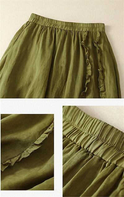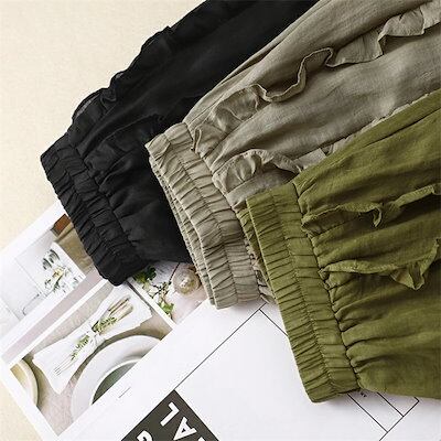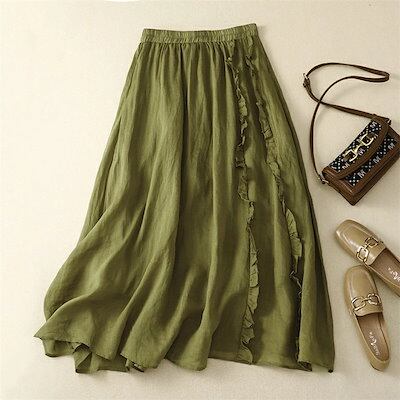 スカート 綿麻風スカート レディース 夏 ロングスカート ロング丈 綿麻風 Aライン フリル フレア ボトムス ナチュラル 森ガール ウエストゴム ゆったり 体型カバー カジュアル シンプル お出か
