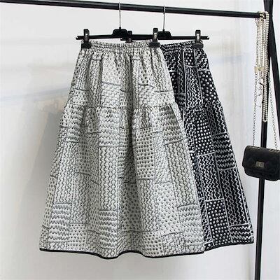 スカート ロングスカート フレアスカート 春秋 レディース ボトムス ハイウエスト ボリューム フレア ロング ミモレ丈 Aライン ウエストゴム 裏地付き 美脚 細見え 着回し きれいめ 大人 おしゃ