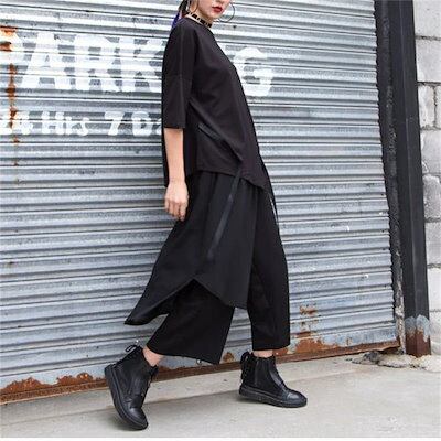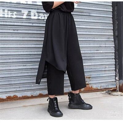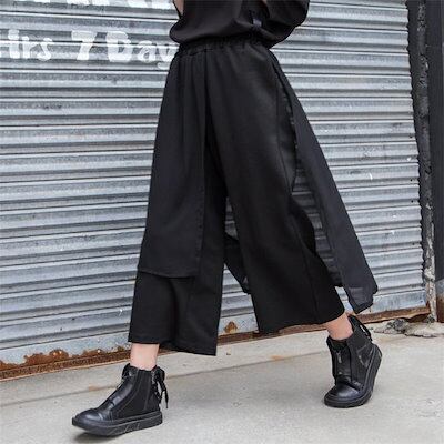 袴パンツ ワイドパンツ カフェパンツ レディース 春 夏 秋 9分丈 スカート風パンツ 変形デザイン 大きいサイズ ワイドパンツ ボトムス レイヤード 重ね着風 ウエストゴム モード系 個性的 大きい