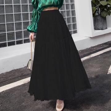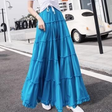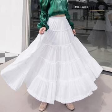 新限定販売 レディース スカート ティアード 膝下 マキシ 裾フリル セミフレア フェミニン シフォン ウエストゴム 薄手 かわいい 大人可愛い シンプル カジュアル おしゃれ 350ポイント無料