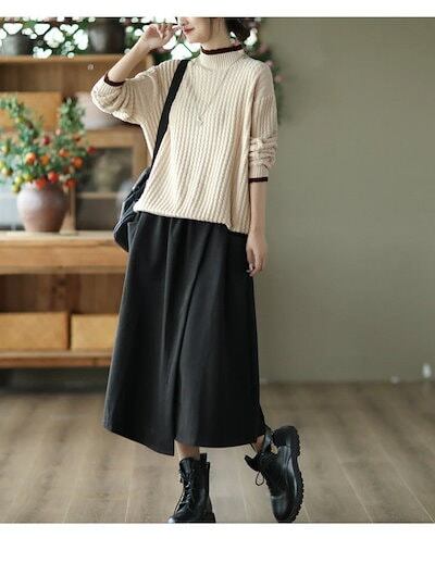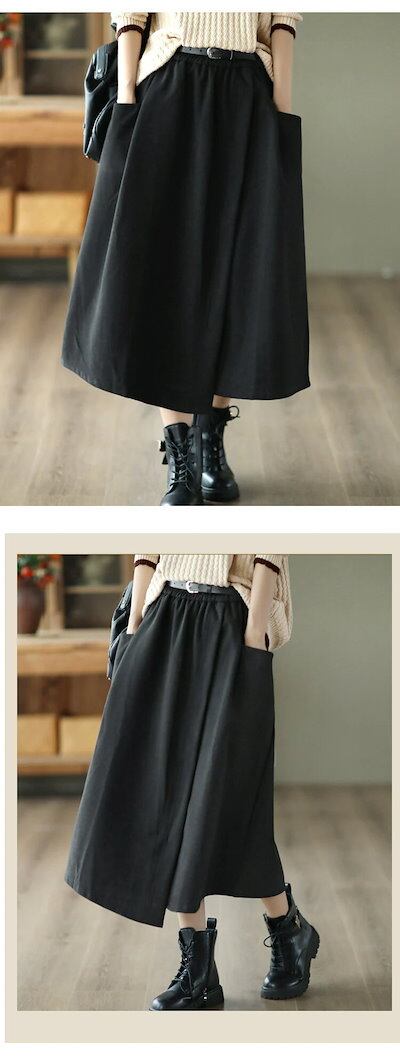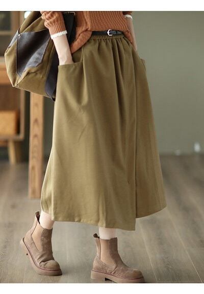 スカートレディースロングスカートミモレ丈ロング丈ひざ下IラインスカートIラインボトムススウェットアシンメトリー無地秋秋ベルト付きウエストゴムフロントスリットサイドポケットコットンコーヒーブラックキャメ