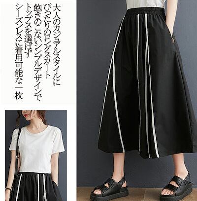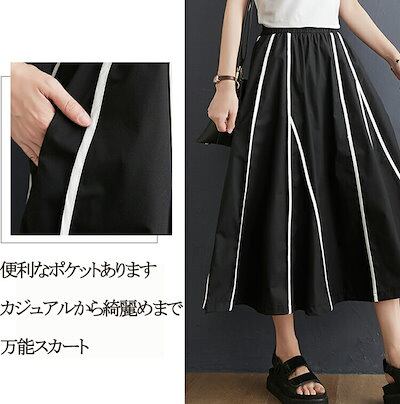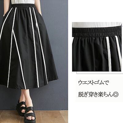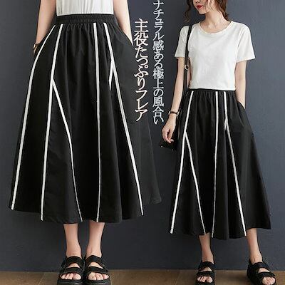 フレアスカート ロング スカート 春 レディース フレア 配色 aラインスカート 膝丈 ロングスカート 大きいサイズ ウエストゴム マキシスカート 春夏 ロング丈 体型カバー ひざ丈 ポケット ゆっ