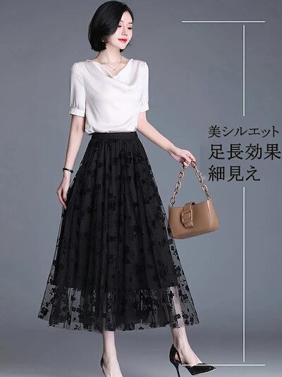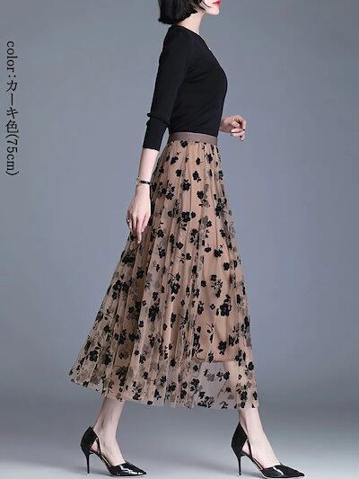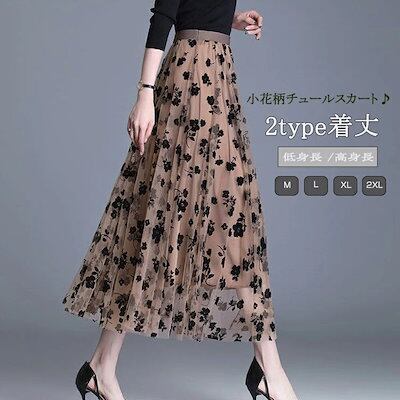 チュールスカート ロング レディース 春秋 aラインスカート ふんわり ロングスカート 大きいサイス ゆったり 体型カバー フレアスカート ハイウェスト ロング丈 チュール スカート 花柄 春 夏 秋