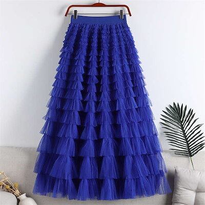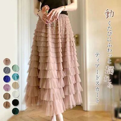 ティアードスカートレディースボトムスロング丈フレアスカートティアードスカートルスカートかわいいAラインフレアウエストゴム体型カバーおしゃれゆったりカジュアル3554