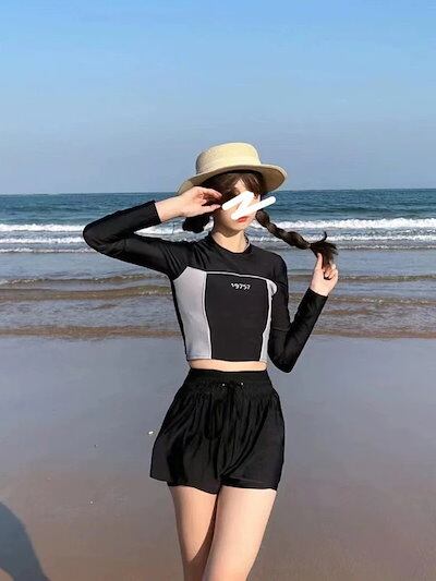 水着 韓国ファッションの水着 セパレート水着夏長袖控えめ痩せ見え腹隠し学生運動温泉入り高級感水着 2025新作 体型力バー レディース 水着orange