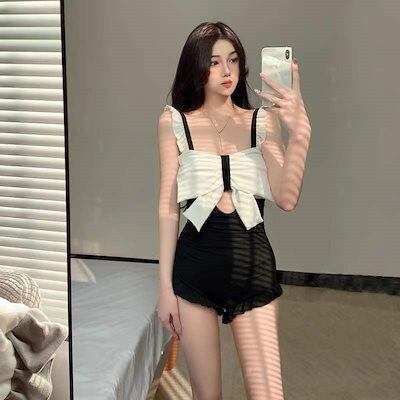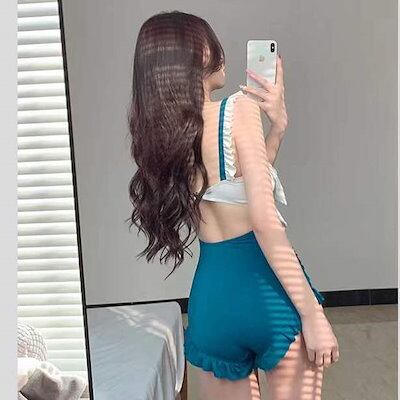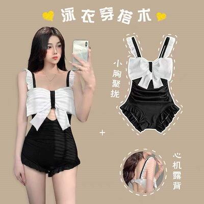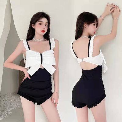 水着 レディース 体型カバーサンダル スイムウェアswimsuit女性ワンピース型スモールホルター新コーナーラブリー蝶結びラッフルファッションビューティーバックホリデースパ 韓国ファッ