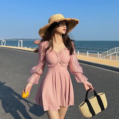 水着 2025 大きいサイズ 水着 レディース 保守的 スカート ベリーシェード ワンピース 長袖 スパ 韓国ファッション