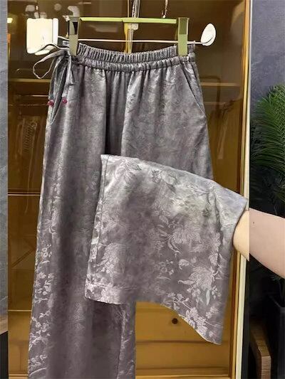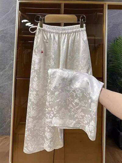 営?促? ワイドパンツ パンツ レディース ワイド ロングパンツ ロング丈 ストレート イージーパンツ 花柄 総柄 ウエストゴム ハイウエスト ポケット付き 美脚 脚長効果 体型カバー 大きいサイズ
