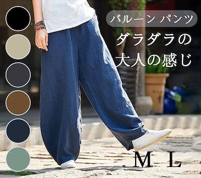 新入荷!バルーン パンツ レディース ワイド レディース 春 夏 おしゃれ 流行 可愛い 通気 ゆったり きれい シンプル 着回し 大人可愛い 大きめ オーバーサイズ 無地 ゴム 麻 リネン