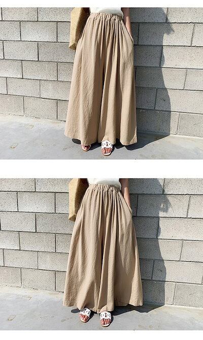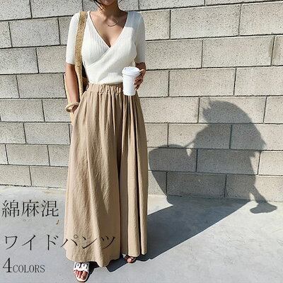 大人気 上品 綿麻混パンツ ワイドパンツ スカーチョ ガウチョパンツ ボトムス レディース ワイド パンツ 無地 ロング リネンパンツ 綿麻 リネン ウエストゴム 体形カバー 大きいサイズ ゆったり