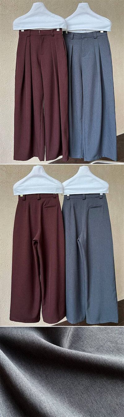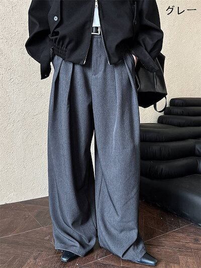 超人気 スラックス ロング パンツ レディース 新作 無地 ワイドパンツ ロングパンツ ボトムス ワイド プリーツ ハイウエスト ゆったり 春 秋 お洒落 カジュアル ポケット 体型カバー 美脚 通勤